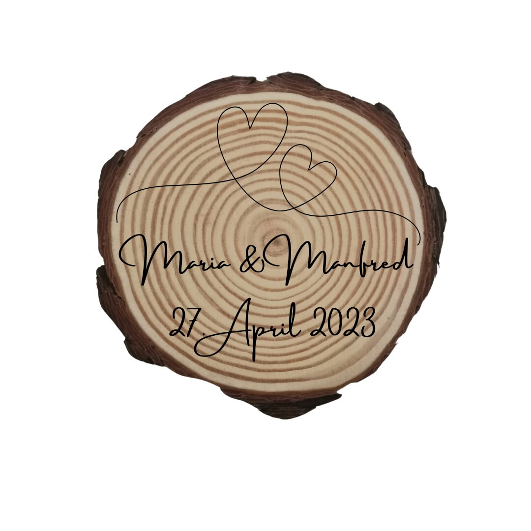 Machen Sie den schönsten Tag im Leben eines Paares noch unvergesslicher mit einer einzigartigen und liebevoll gestalteten Geschenkidee: einer gravierten Holzscheibe. Dieses besondere Hochzeitsgeschenk verbindet natürliche Eleganz mit persönlicher Note und wird garantiert zu einem wertvollen Erinnerungsstück für das Brautpaar.
