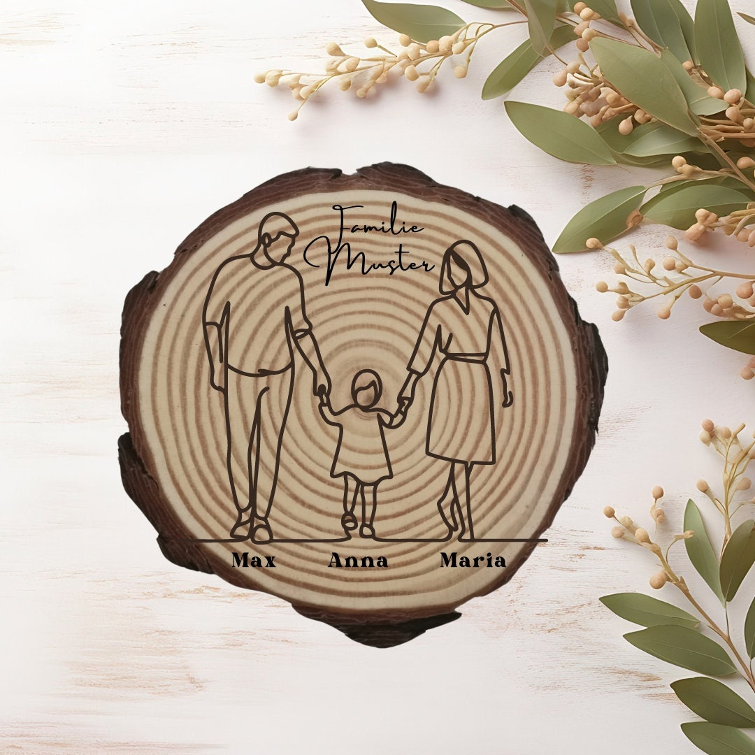 Verewigen Sie kostbare Familienmomente auf einzigartige Weise mit unserer gravierten Holzscheibe. Dieses besondere Kunstwerk kombiniert die natürliche Schönheit von Holz mit moderner Gravurtechnik und wird zu einem wertvollen Erinnerungsstück, das Ihre Familie für immer schätzen wird.