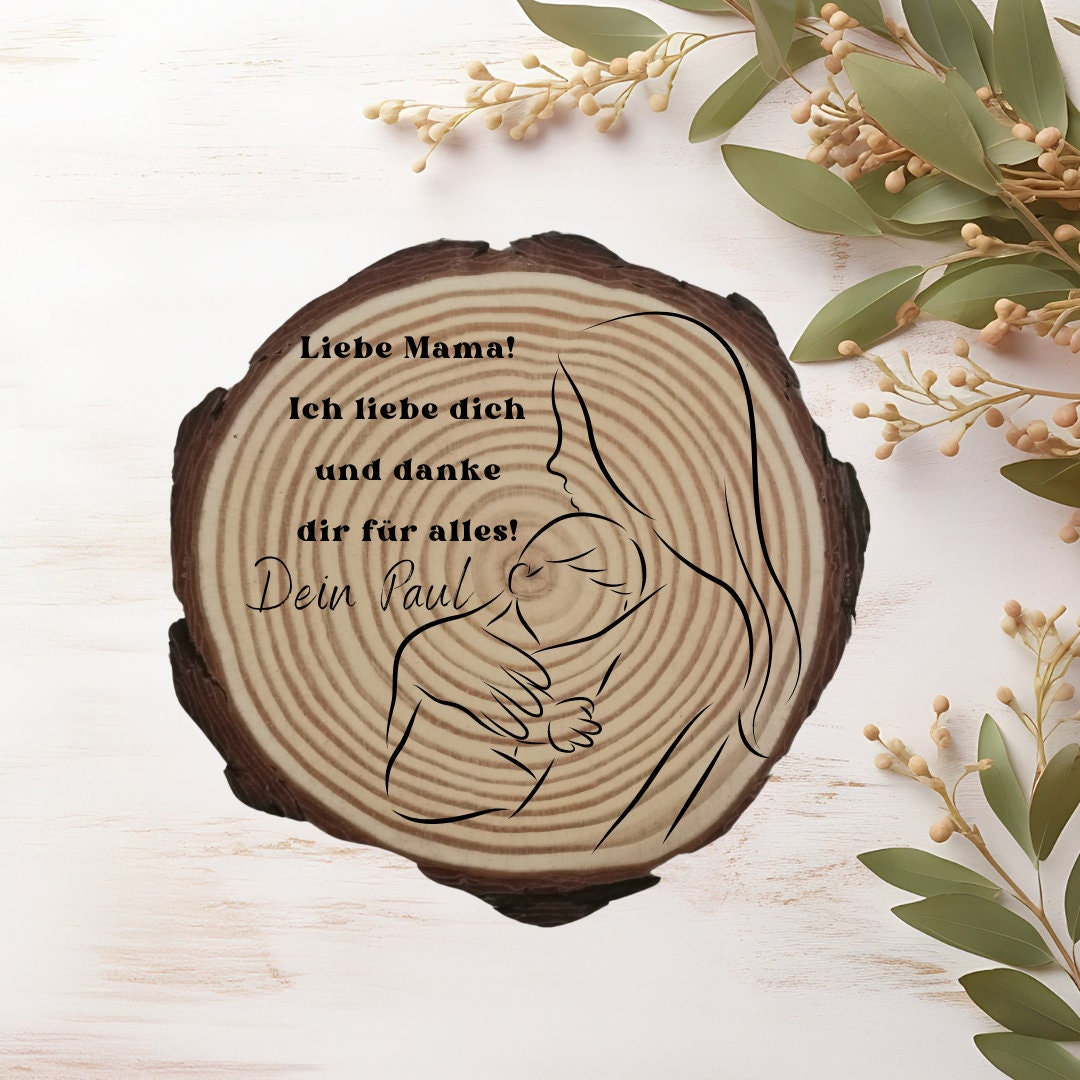 Schenken Sie Ihrer Mutter oder sich selbst ein Stück Natur, das zugleich von Handwerkskunst und persönlicher Bedeutung erzählt. Unsere gravierte Holzscheibe ist die perfekte Kombination aus Natürlichkeit, Individualität und Liebe – ein Geschenk, das wirklich berührt und lange in Erinnerung bleibt.