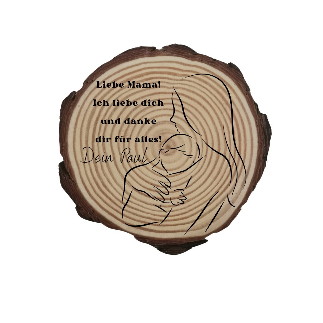 Zeigen Sie Ihre Liebe und Wertschätzung mit einer einzigartigen und liebevoll gestalteten Geschenkidee: einer gravierten Holzscheibe für Mama und Kind. Diese besondere Holzscheibe verbindet die natürliche Schönheit des Holzes mit einer persönlichen Gravur und wird zu einem wertvollen Erinnerungsstück für die Ewigkeit.